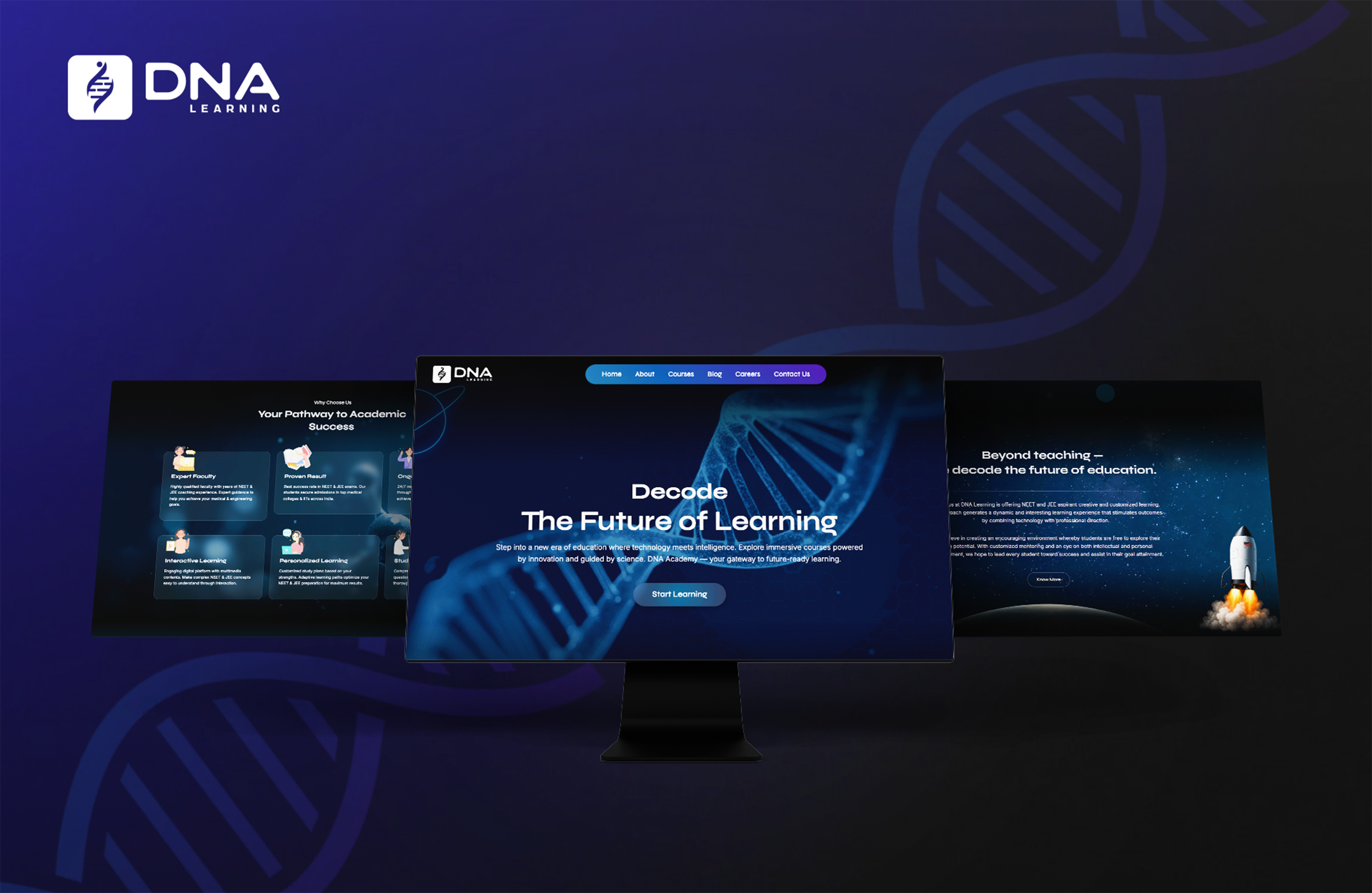 A custom-coded website was designed and developed to establish a strong digital presence for DNA Learning. The project included detailed UI/UX design to create a clear, engaging, and student-friendly interface that allows users to easily explore courses, learning methods, and academic programs.